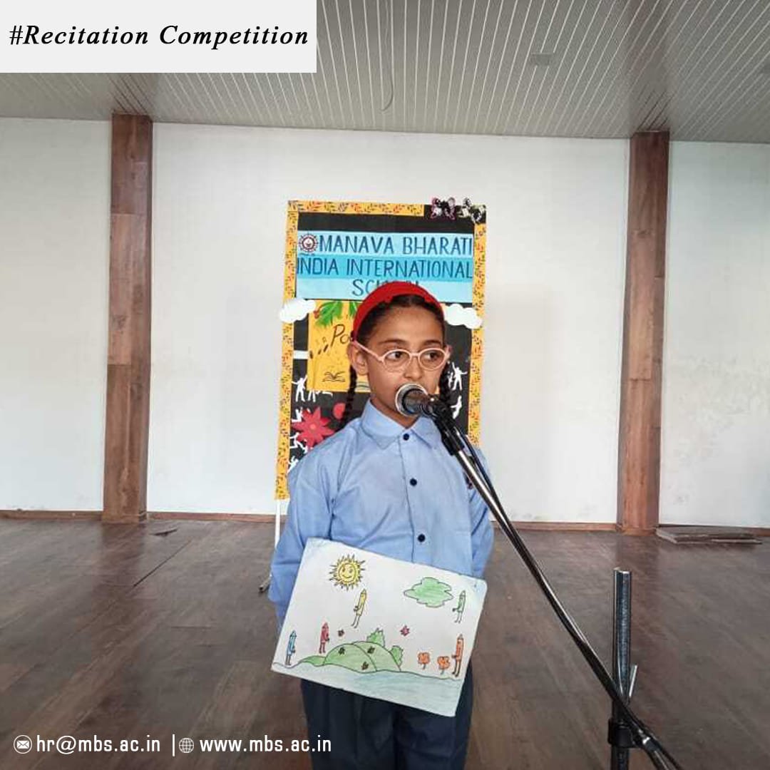 A poetry recitation competition was organised on 3rd August 2023 at Manava Bharati India International school for the students of classes I to VIII. The theme of the competition was ‘Nature’ and children recited beautiful poems appreciating the beauty of nature. Poetry is the core of literature and also one of the important and effective modes of learning a language.It not only builds self confidence but also develops the oratory skills of a child.Taking all these facts into consideration the children were given an opportunity to exhibit their talent and confidence. The competition inspired the children to come forward and recite on stage. The children came up with different poems and recited them with great zeal and enthusiasm and enthralled the audience with their powerful performances. The judges appreciated and applauded the performances of these young poets.